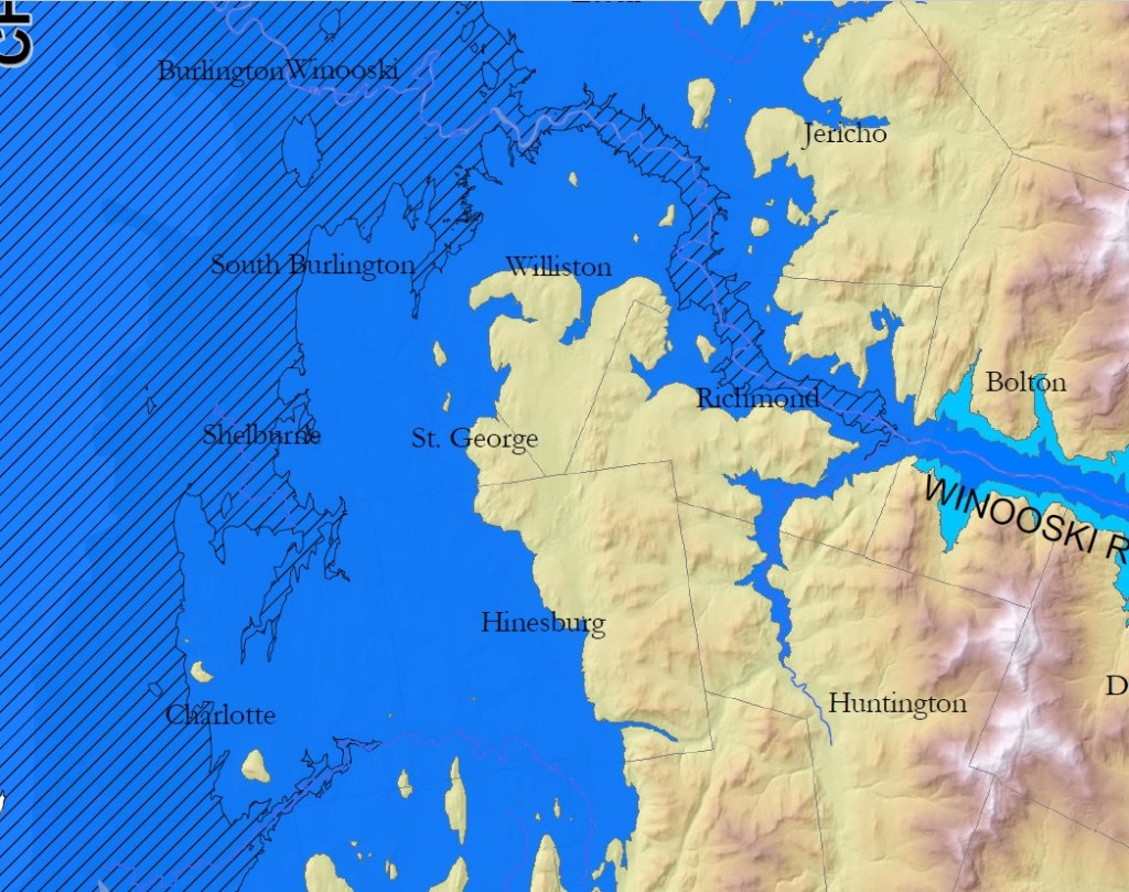 From the Vermont Geological Survey, Major Glacial Lakes and the Champlain Sea, Vermont, 2020.