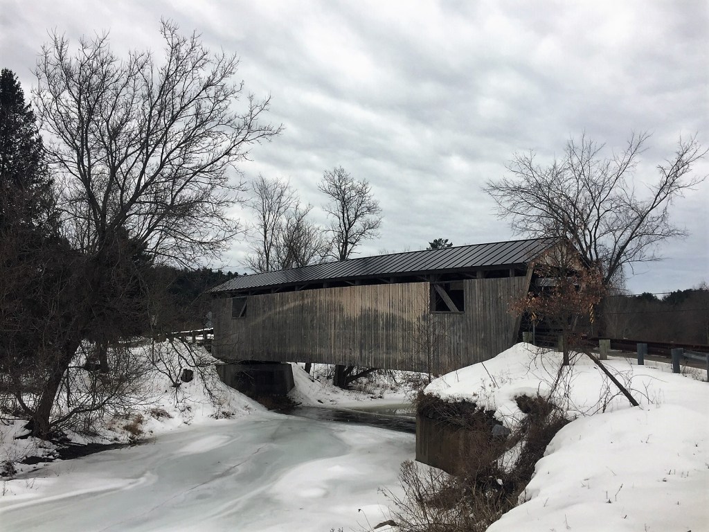 With the advent of modern metal trusses and reinforced concrete, crossing the river in Vermont evolved away from covered bridges. Now some modern bridges look so much like the roadway that I don’t even realize I’m crossing a river at all. But if I want to, I can take a moment and stand at any Vermont bridge, and look at the water running past. I can let my thoughts go back to the earlier residents who needed to understand and work with the river itself to find ways to cross it, and may have gotten wet in the process.
